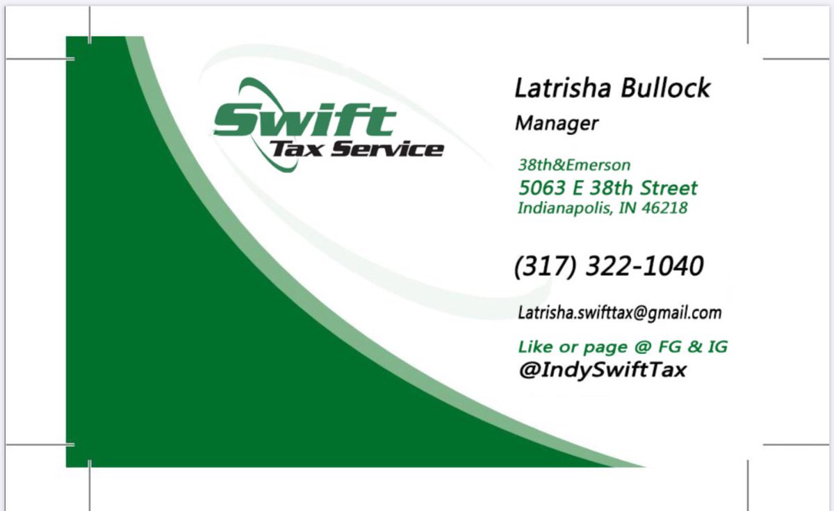 Swift Tax Service Indianapolis Indiana. We have three Locations Swift Tax 5063 East 38th Street Indianapolis In 46218. Find related and similar companies as well as.