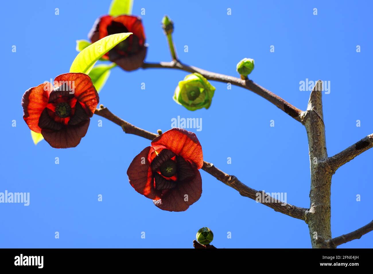 Close Up Flower Buds Of The Common Paw Paw Tree Asimina Triloba Stock Photo Alamy